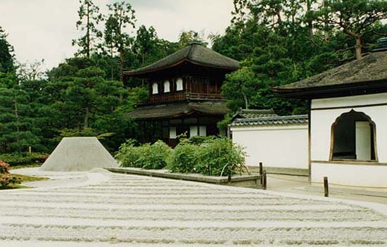 Jisho-ji was converted into a Zen temple following Yoshimasa's demise. Modeled