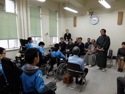 第20回日本電動車椅子サッカー選手権大会出場選手表敬訪問(市会第三会議室)(中村議長,井上副議長出席)