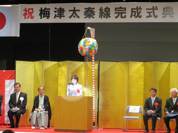 梅津太秦線完成式典が開催され,副議長が出席しました。副議長は,「本道路は,多くの観光名所が存在する幹線道路であり,また,地域の方々の安心・安全で快適な生活を支える道路でもあり,本道路の完成は多くの方々が待ち望んでいたものです。本道路の完成を契機に,今後,地元の皆様はもちろん,京都を訪れる方々にとっても利便性が高まり,右京区はもとより,本市全体のまちづくりの更なる発展につながっていきますことを心からご期待いたします。」と祝辞を述べました。