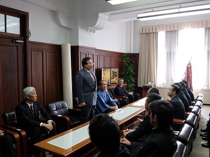 第94回全国高等学校ラグビーフットボール大会に京都代表として出場する,京都成章高等学校の選手の皆様が表敬訪問に来られ,議長が出席しました。