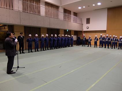 消防団激励巡視が開催され,議長,副議長共に参加しました。今年度は,花園分団(右京消防団),小川分団(上京消防団),西野分団(山科消防団),永松分団(下京消防団)に激励を行いました。