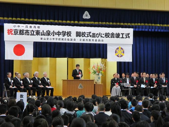 京都市立東山泉小中学校開校式並びに校舎竣工式(東山泉小中学校西学舎)(橋村議長,隠塚副議長出席)