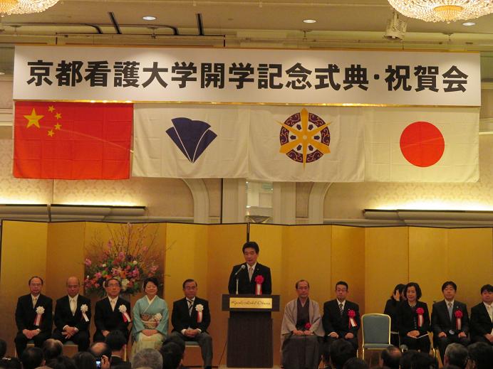 京都看護大学の開学記念式典・開学記念祝賀会が開催され,議長,副議長が共に出席しました。議長は,「今後,本大学で学ばれる皆様が,高い技術と幅広い教養,そして思いやりの心を磨かれ,京都のみならず国際社会で生き生きと活躍されますことを心からご期待申し上げます。」と祝辞を述べました。