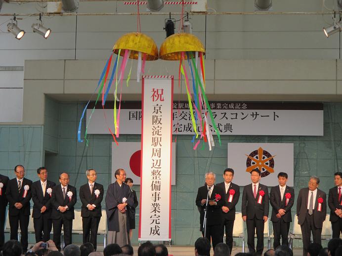 京阪淀駅周辺整備事業完成記念式典(京都競馬場 緑の広場)(橋村議長,隠塚副議長出席)