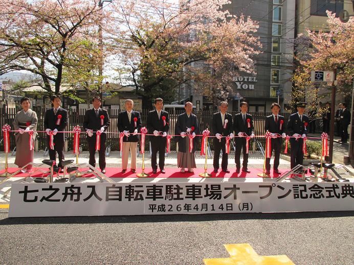 木屋町周辺の放置自転車対策を目的に,立誠小学校跡地の北側に新たに整備された七之舟入自転車駐車場のオープニング式典に議長が出席しました。