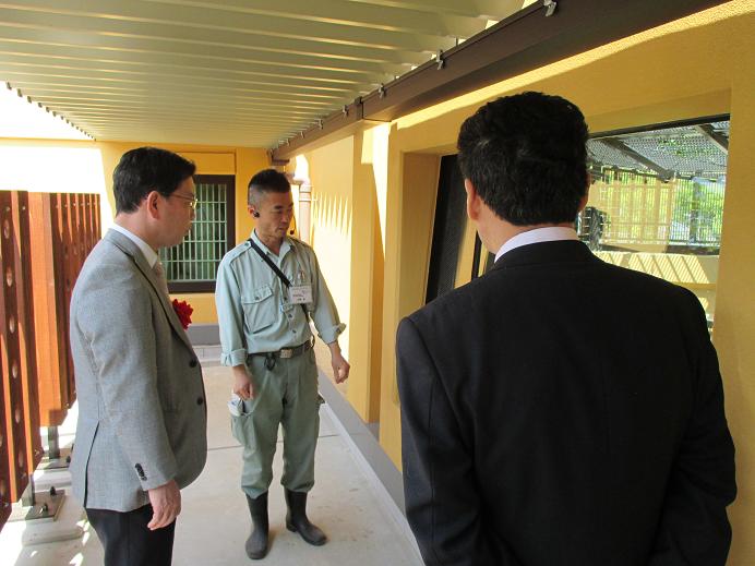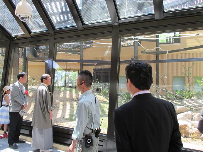 京都市動物園に新たに整備されたゴリラの新施設のオープン式典に,議長,副議長共に出席しました。園長から,ゴリラの様子を楽しく観賞できる工夫が施されているだけでなく,太陽光発電などの環境に配慮した工夫も施された施設となっていますとの紹介がありました。