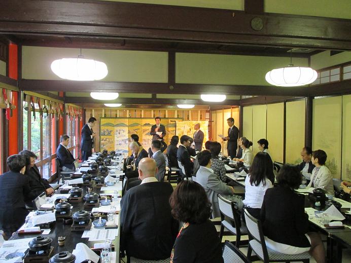 京都・西安友好都市提携40周年を記念して,西安市書画訪日団が来日し歓迎の夕食会が開催され,議長が出席しました。議長は,「京都市は唐の都「長安」をモデルとして整備され,西安市とまちの雰囲気が通じている部分がある。京都の和食と日本酒をご堪能いただき,京都の文化・伝統をご体感ください。」と乾杯のあいさつを述べました。