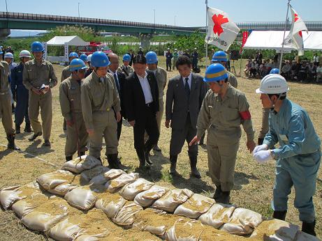 淀川・木津川水防事務組合水防訓練(久御山町木津川河川敷)(橋村議長出席)