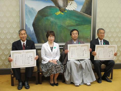 5月28日に開催された全国市議会議長会において,次の議員が表彰されましたので,市役所にて議長から表彰状の伝達と記念品の授与を行いました。