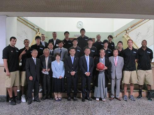 京都市を本拠地とするプロバスケットボールチーム「京都ハンナリーズ」が2014-2015シーズン開幕に伴い,京都市役所に表敬訪問をされ,議長,副議長ともに出席しました。