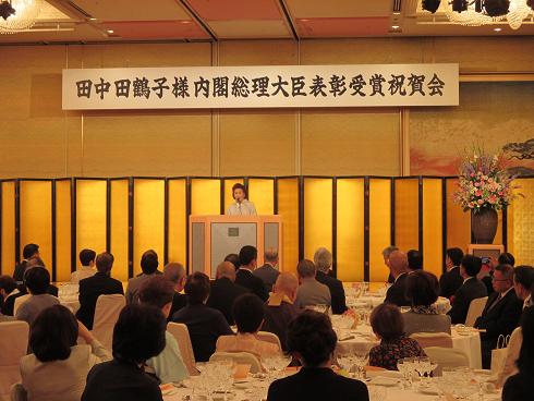 田中田鶴子氏の「男女共同参画社会づくり功労者 内閣総理大臣表彰」受賞記念祝賀会が開催され,議長が出席しました。