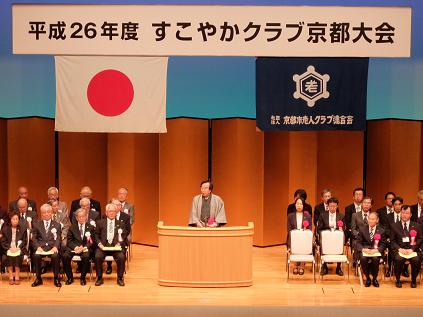 平成26年度京都市老人クラブ大会が京都テルサで開催され,議長が出席しました。議長は,「超高齢社会を迎えた今日,皆様方の豊富な経験や知識を生かし,お一人おひとりが心身ともに充実した日々をお送りいただくことが,地域の更なる活力,活性化に繋がっていきます。これからも先導役としてお力添えをいただきますようお願いいたします。」と祝辞を述べました。