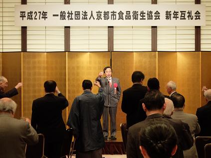 京都市食品衛生協会新年互礼会が開催され,議長が出席しました。議長は「「食」は健康づくりの源でありますが,残念ながら,「食」に対する信頼が脅かされるような事件が起きております。