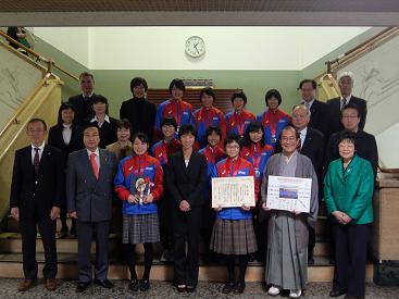 皇后杯第33回全国都道府県対抗女子駅伝競走大会京都府代表チーム「京都市スポーツ敢闘賞」表彰式(第一応接室)(中村議長,井上副議長出席)