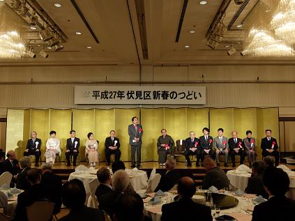 伏見区新春のつどいが開催され,議長が出席しました。議長は「伏見区には,全国屈指の伏見の清酒をはじめとする伝統産業があるだけでなく,先進的な取組で世界を舞台に活躍する企業も数多く立地するなど,様々な顔を併せ持つ,賑わいのあるまちとして着実に成長を続けております。今後も更なる発展を期待しています。」と祝辞を述べました。