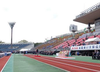第26回全国車いす駅伝競走大会出発式(国立京都国際会館),昼食会,閉会式(西京極陸上競技場)(中村議長出席)