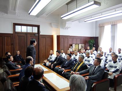龍谷大学付属平安高等学校硬式野球部表敬訪問(第一応接室)(中村議長,井上副議長出席)