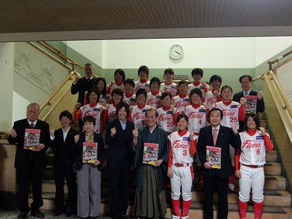 日本女子プロ野球リーグ2015シース゛ン開幕に伴い,女子フ゜ロ野球チーム「京都フローラ」の選手が表敬訪問に来られ,議長,副議長ともに出席しました。