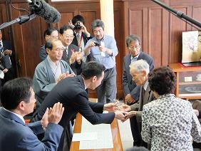 京都マスターズ秋季記録会において世界記録を樹立された宮崎秀吉さんへの京都市スポーツ最高栄誉賞表彰式が開催され,議長,副議長共に出席しました。