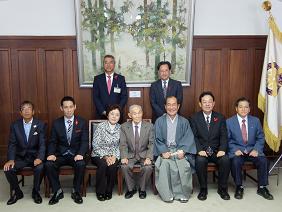 京都マスターズ秋季記録会 世界記録樹立 宮崎秀吉さん 京都市スポーツ最高栄誉賞表彰式(第一応接室)(津田議長,大道副議長出席)