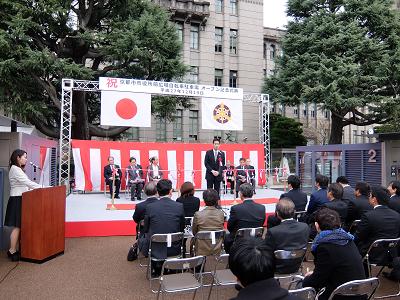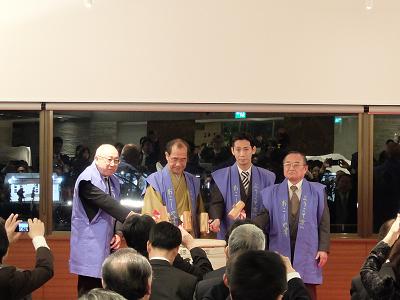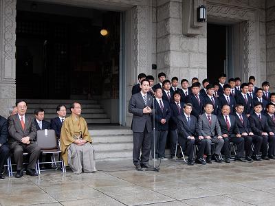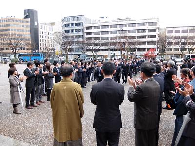全国高校ラグビー大会出場 伏見工業高校 激励会(市役所前広場)(津田議長,大道副議長出席)