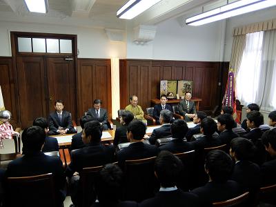 全国高校ラグビー大会出場 伏見工業高校 激励会が開催され,議長,副議長共に出席しました。