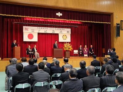 大原地域水道・公共下水道整備事業完了記念碑除幕式及び記念式典(大原第1浄水場,大原学院体育館)(津田議長出席)