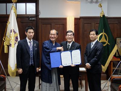 京都市・宇治市による観光振興と安心安全に関する連携協定締結式(第一応接室)(津田議長出席)