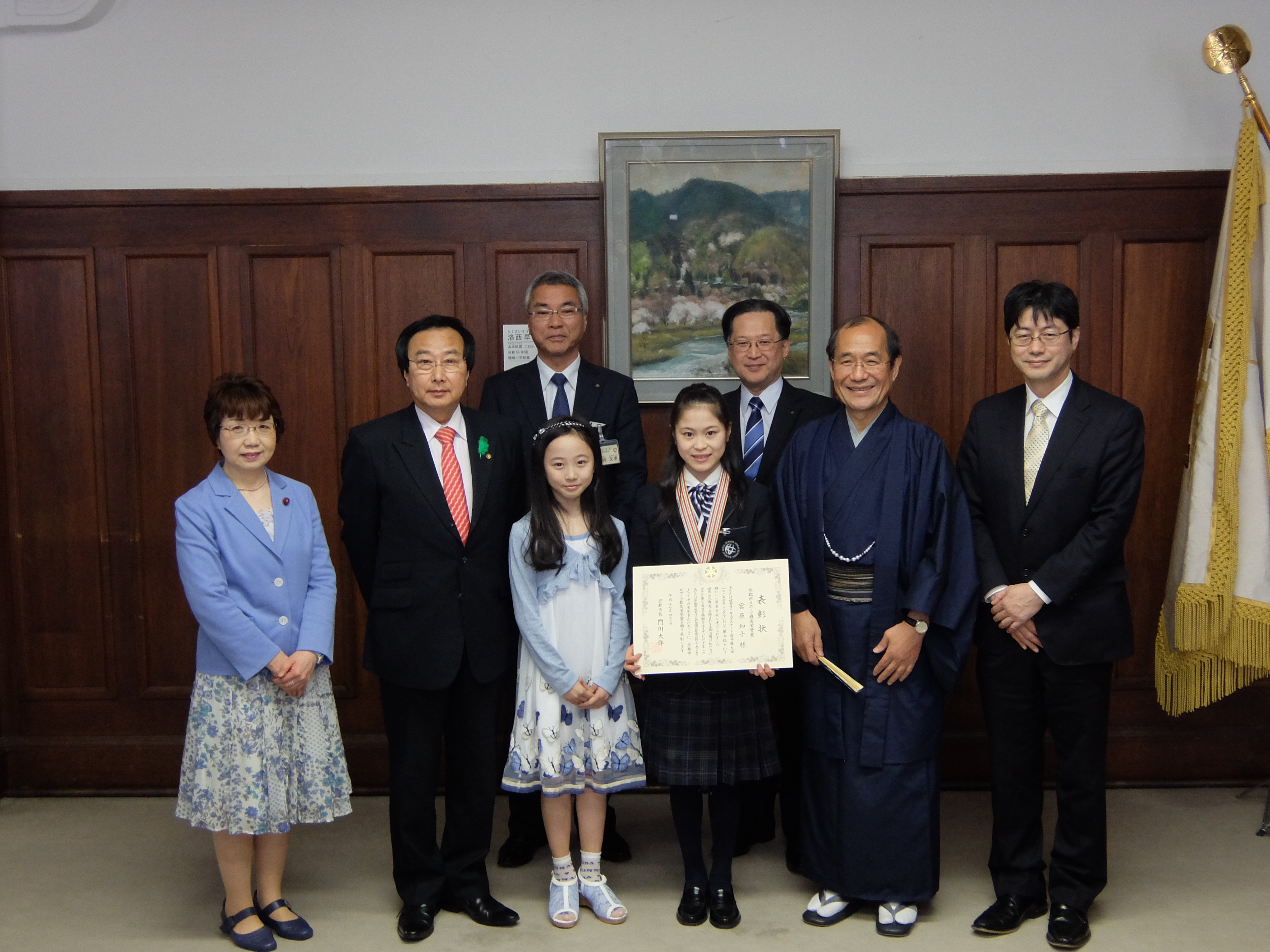 世界フィギュアスケート選手権大会2015女子シングルで銀メダルを獲得した宮原知子選手に「京都市スポーツ最高栄誉賞」が授与されることとなり,表彰式に議長,副議長ともに出席しました。