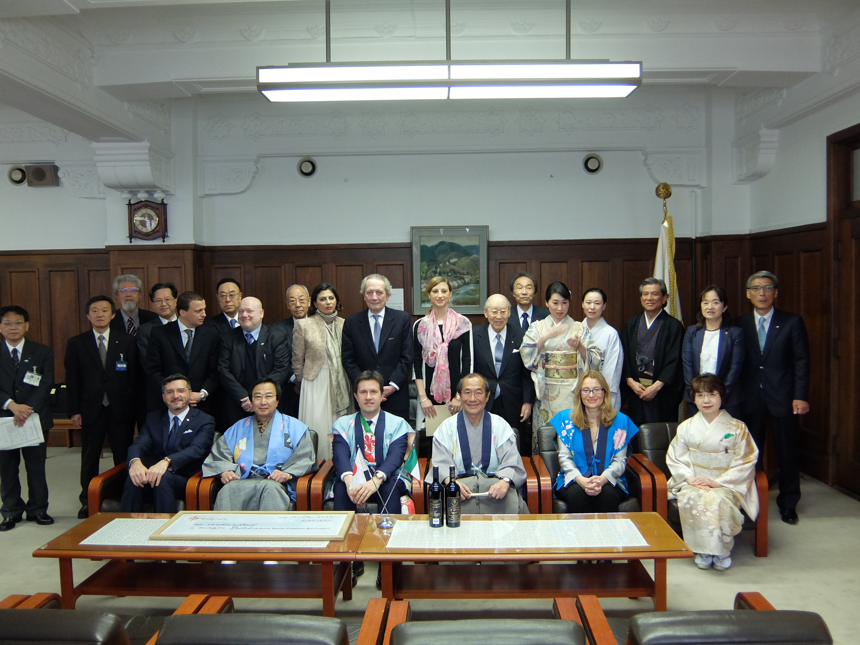 京都市とフィレンツェ市との姉妹都市提携50周年記念事業の開催に伴い京都市を訪問されたフィレンツェ市代表団が,京都市役所に表敬訪問に来られ,議長,副議長ともに出席しました。