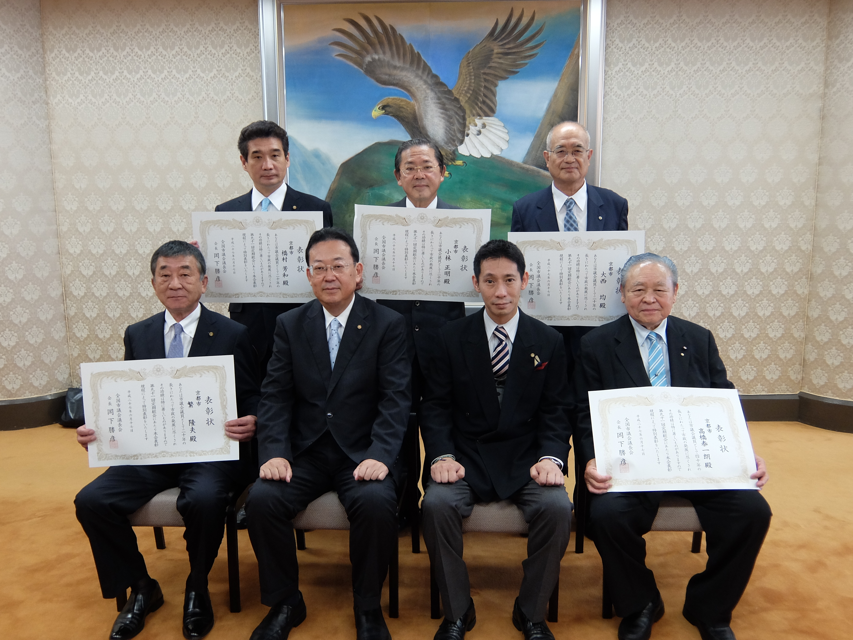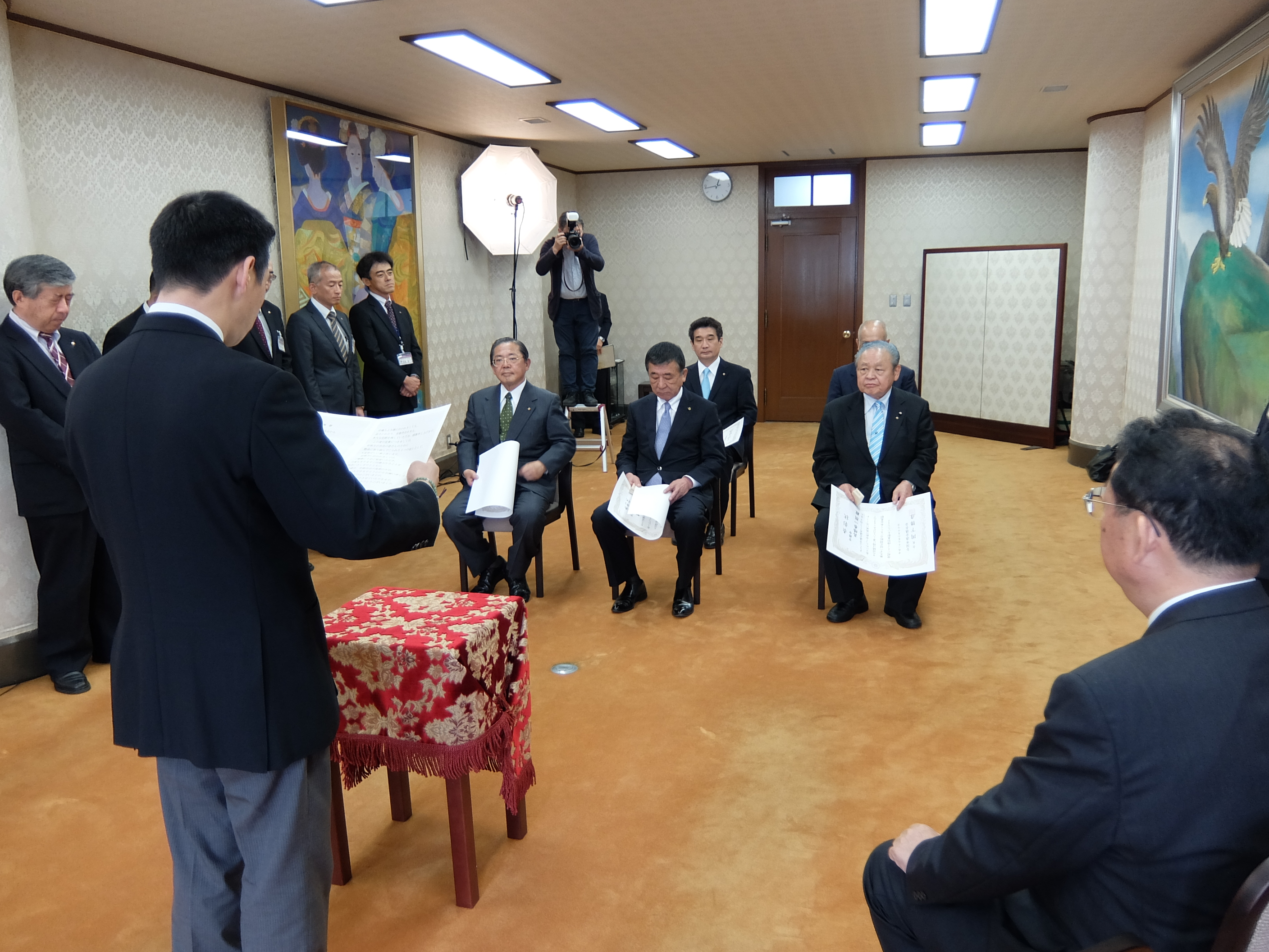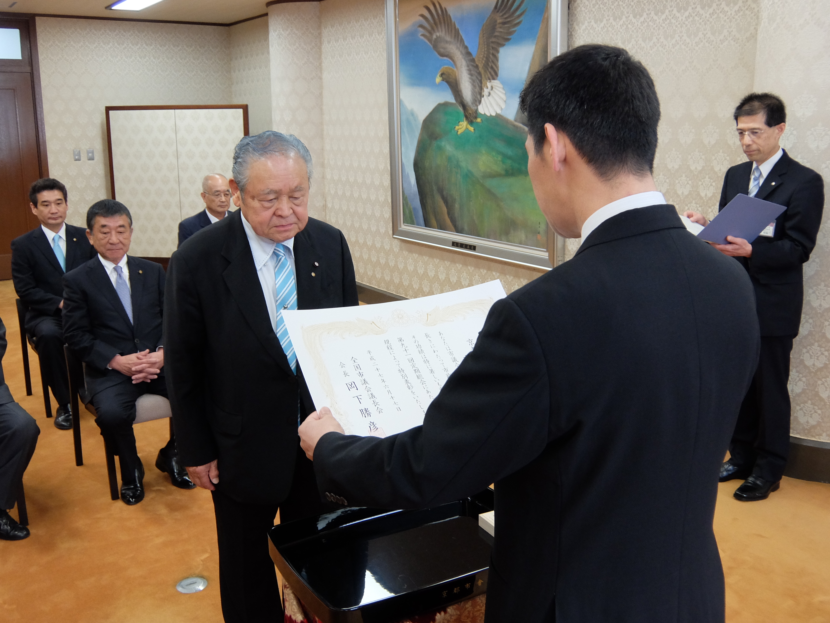 全国市議会議長会伝達表彰式(理事会室)(津田議長,大道副議長出席)