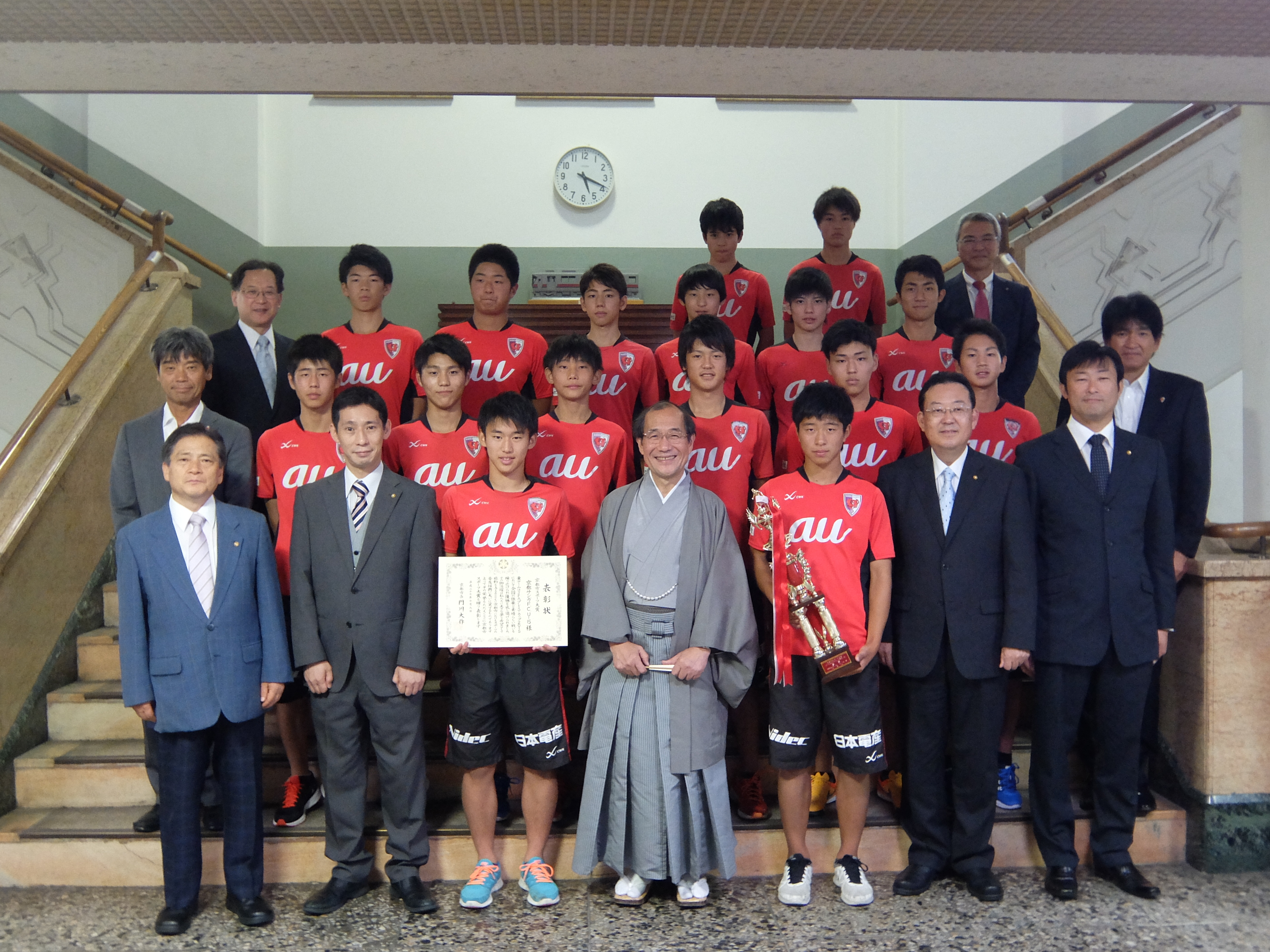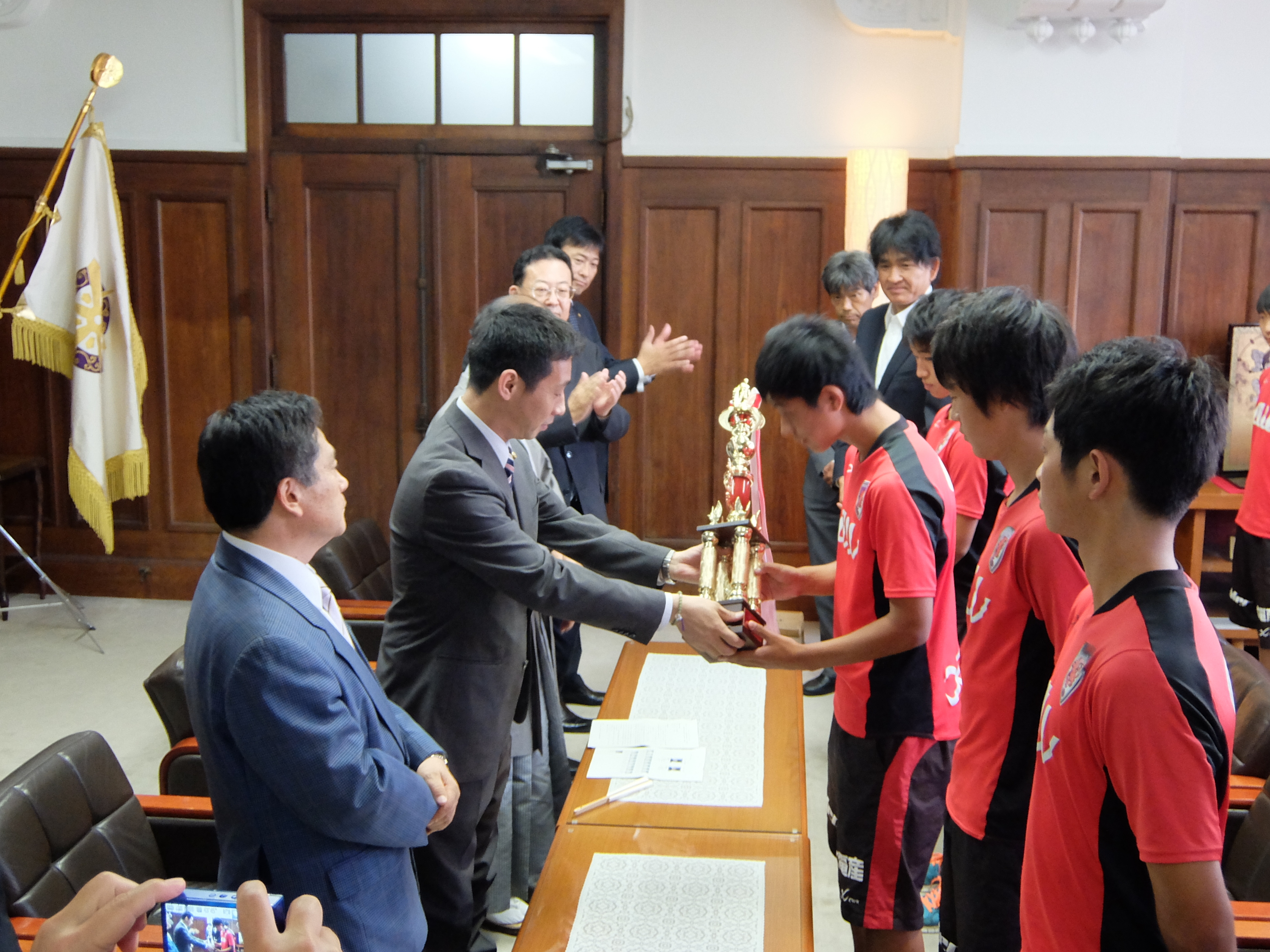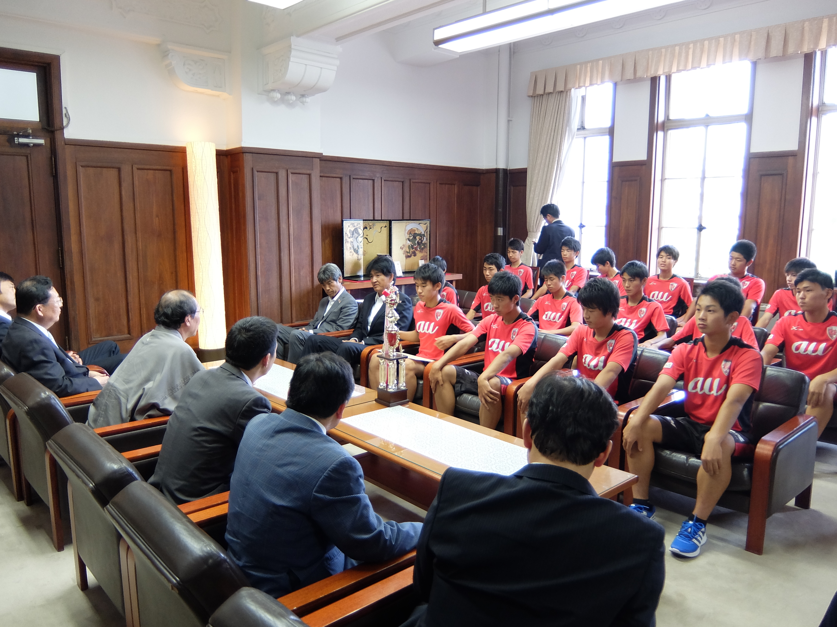 京都サンガFC U-15世界大会出場に伴う表敬訪問が行われ,議長,副議長共に出席しました。