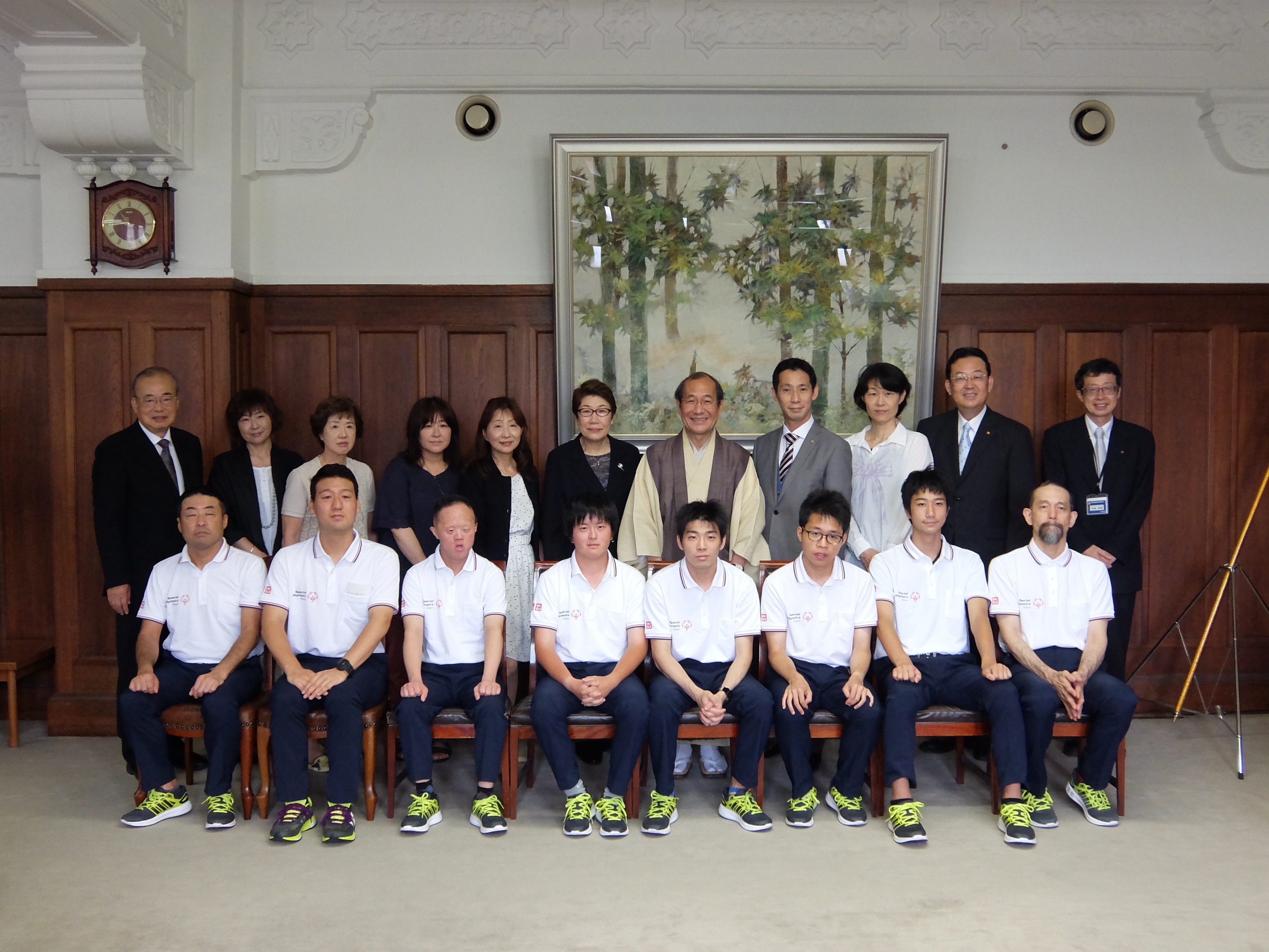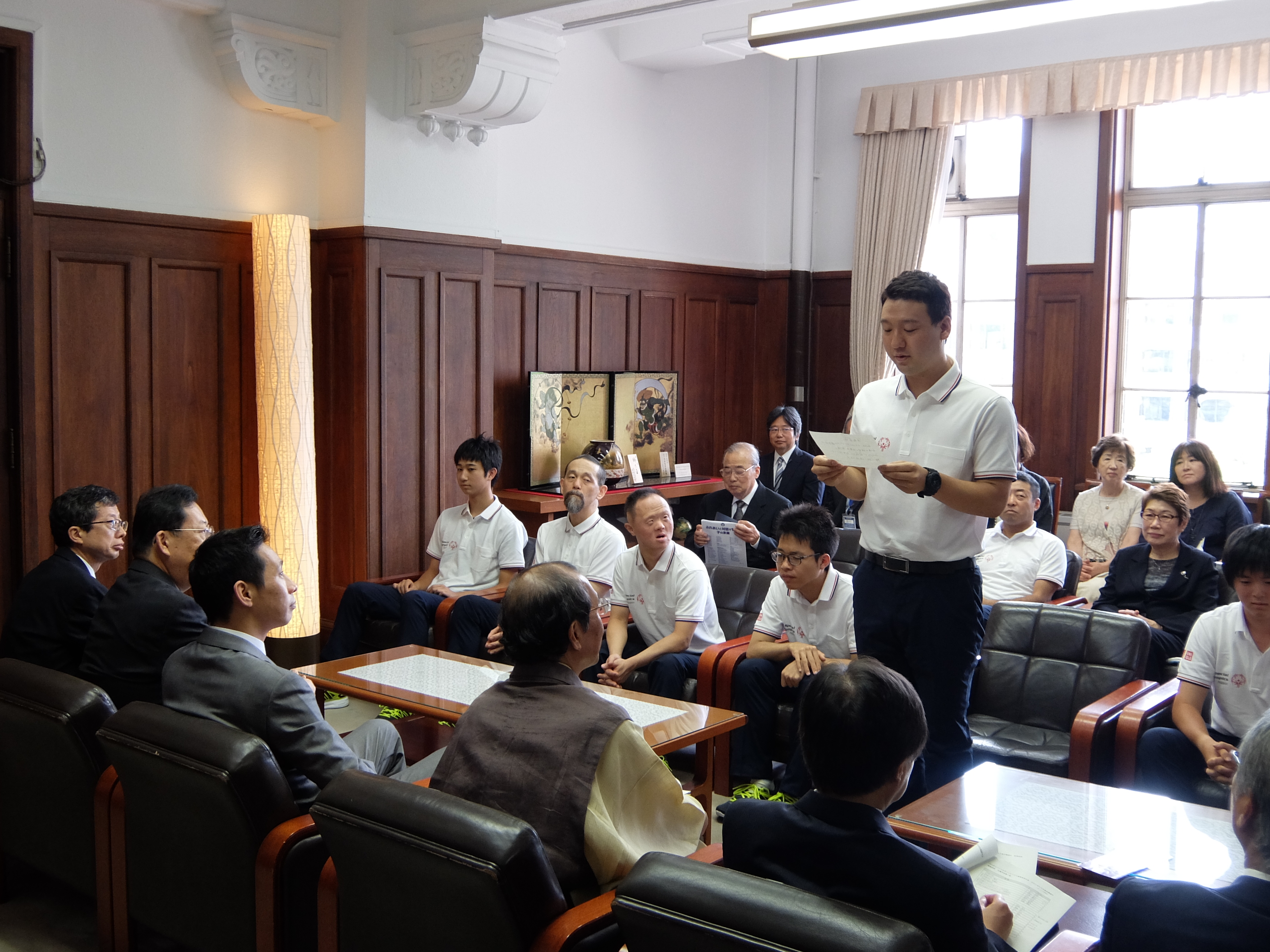 2015スペシャルオリンピックス夏季世界大会・ロサンゼルス大会出場選手表敬訪問(第一応接室)(津田議長,大道副議長出席)