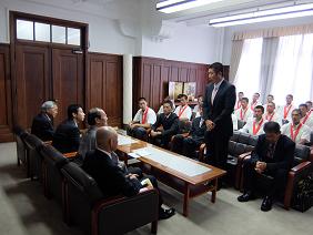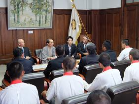 第97回全国高等学校野球選手権大会に出場する京都府立鳥羽高等学校硬式野球部が京都市役所を表敬訪問され,議長が出席しました。