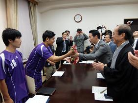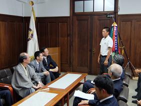 第11回全日本大学フットサル大会優勝同志社大学フットサルクラブTREBOL 京都市スポーツ大賞表彰式(第二応接室)(津田議長・大道副議長出席)