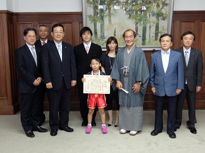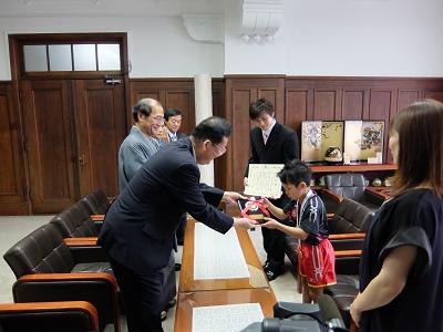 全農杯全日本選手権大会バンビの部男子シングルス優勝松島選手 京都市スポーツ大賞表彰式(第一応接室)(大道副議長出席)