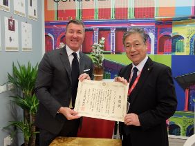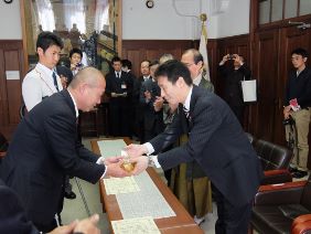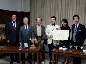 ワールド・カクテル・チャンピオンシップス2016総合優勝 坪倉健児氏の京都市きらめき大賞表彰式及び京都観光おもてなし大使任命式(第一応接室)(津田議長,曽我副議長出席)
