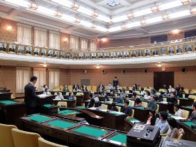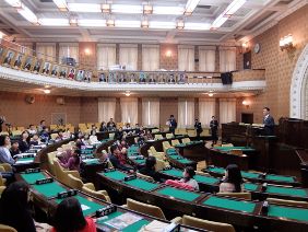 次代を担う子どもたちとその保護者の皆様に,市会を身近に感じていただくため,京都市会親子ふれあい議場見学会を開催し,議長が挨拶をしました。