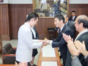 リオデジャネイロパラリンピックにおいて,水泳女子4×100mフリーリレー34Pで第6位に入賞された京都市出身の一ノ瀬メイ選手(表彰式は体調不良のため欠席),アーチェリー男子個人リカーブオープンで第7位に入賞された同志社大学出身の上山友裕選手に対する京都市スポーツ栄誉賞の表彰式が開催され,議長が出席しました。