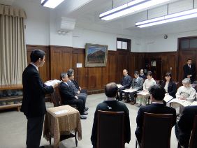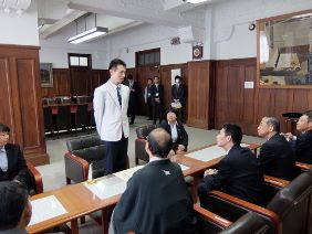相模原市議会の議会運営委員会の皆様が,通年議会等の調査のため京都市会を訪問され,議長が挨拶しました。