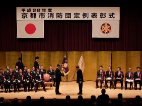 平成28年度京都市消防団定例表彰式が開催され,議長,副議長共に出席しました。