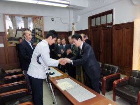 リオデジャネイロパラリンピックにおいて,男子マラソンT11(全盲クラス)で第5位入賞,男子5000mT11及び男子1500mT11で第6位入賞された,京都のランニングクラブ「賀茂川パートナーズ」所属の和田伸也選手への京都市スポーツ栄誉賞の表彰式が開催され,議長が出席しました。