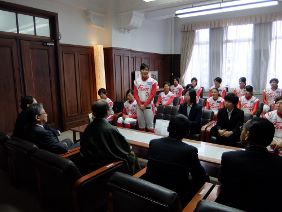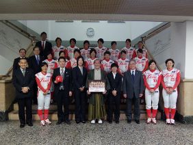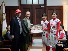 女子プロ野球チーム「京都フローラ」が2016シーズン終了に伴う結果報告のため京都市役所を表敬訪問され,議長,副議長共に出席しました。