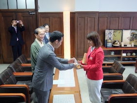 リオオリンピックアーチェリー女子団体8位入賞 林勇気選手への京都市スポーツ栄誉賞表彰式(第一応接室)(津田議長,曽我副議長出席)