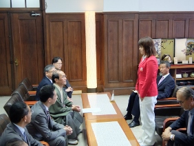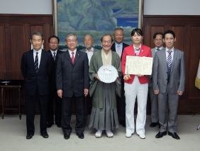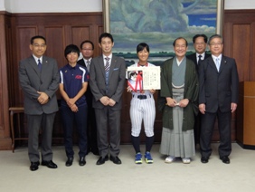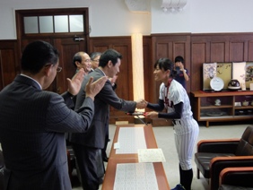 第7回WBSC女子野球ワールドカップで日本代表が優勝し,代表選手として活躍された京都フローラ所属の三浦伊織選手への「京都市スポーツ栄誉賞」表彰式が開催され,議長,副議長共に出席しました。