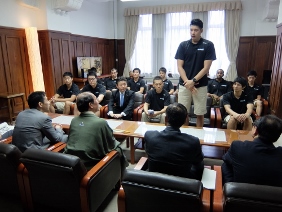 平成28年度第2回議員研修が開催され,議長,副議長をはじめ,議員全員が出席しました。手話に対する理解を深め,率先して普及に取り組むため,手話の実演研修が行われました。
