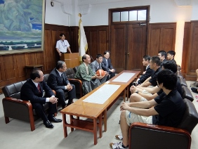 第7回WBSC女子野球ワールドカップ優勝に係る女子野球日本代表 三浦伊織選手の「京都市スポーツ栄誉賞」表彰式(第一応接室)(津田議長,曽我副議長出席)