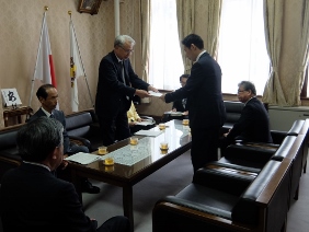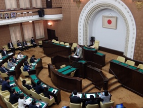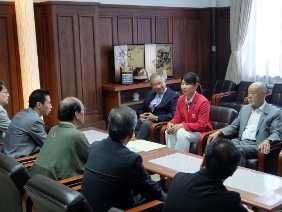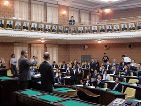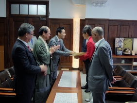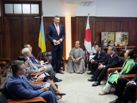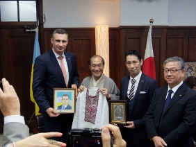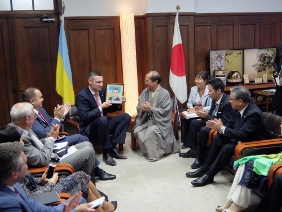 京都市と姉妹都市45周年を迎えるキエフ市の市長が京都市役所を表敬訪問され,議長,副議長共に出席しました。