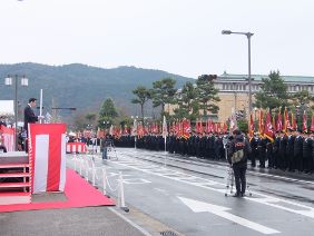 平成29年京都府警察年頭視閲式が開催され,議長が出席しました。
