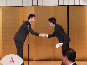 西陣織工業組合新年総会・従業員表彰式(西陣織工業会館)(津田議長・曽我副議長出席)
